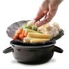 Prilagodi se posodam različnih velikosti, da olajša odstranitev hrane po kuhanju. Premer do 28 cm