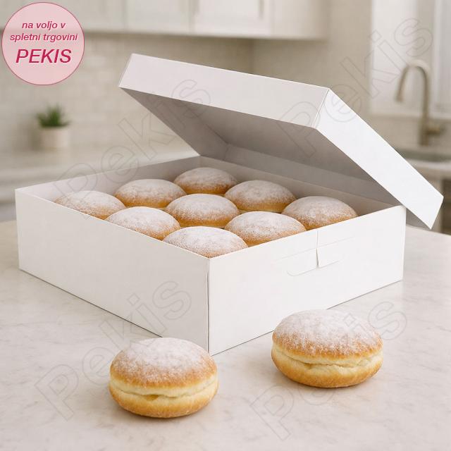 Škatla za krofe ali pito – kartonska embalaža 20×20×8 cm