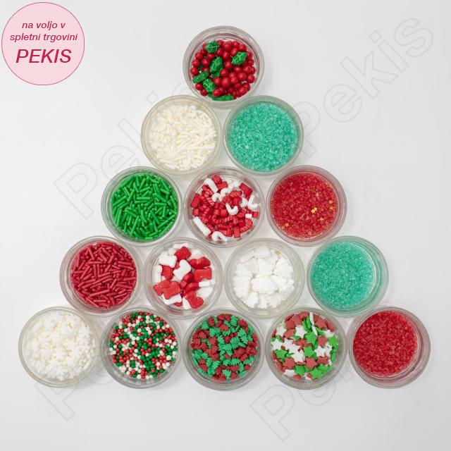 Ta komplet omogoča hitro in preprosto okraševanje – potresite jih po glazuri, kremi, čokoladi ali sladkih omakah ter ustvarite takojšen praznični učinek brez truda. Odlično se podajo k sladoledu, piškotom, kolačkom, tortam, krofom ali sadnim sladicam.