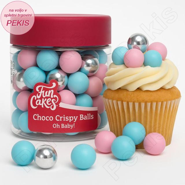 Čokoladne hrustljave kroglice FunCakes spadajo v vrhunsko ponudbo posipov, ki jih prepoznamo po posebnem kozarcu z vijoličnim pokrovom. Te velike čoko kroglice (ø15 mm) imajo slastno hrustljavo sredico in zunanjost sladkarij, zaradi česar niso le najlepši zaključek vaših dobrot, ampak tudi najokusnejše. Čokolada, uporabljena za te kroglice, daje vašim dobrotam razkošen okus, trendovske barvne kombinacije pa poskrbijo za eleganten videz. Se boste odločili za tematske kombinacije? Ali raje uporabite navadne barve za ustvarjanje lastnih edinstvenih modelov? Kakor koli že, uživajte v ustvarjanju z najbolj vrhunsko ponudbo posipov!