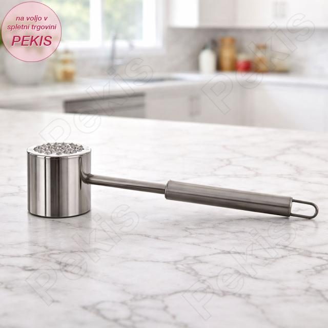 Dvostransko kladivo za zrezke – popoln nadzor mehkobe mesa. Ko meso potrebuje ravno pravo mero popustljivosti, nastopi dvostransko kladivo za zrezke. En udarec je kot tih dogovor z vlakni – gladka stran jih pomiri, groba jih odpre. Rezultat? Zrezek, ki se pod vilicami preda brez odpora. Občutek v roki je čvrst, uravnotežen, skoraj pomirjujoč – kot podaljšek dlani, ki razume ritem kuhinje. Na pultu deluje samozavestno, v uporabi natančno, ob serviranju pa se pokaže razlika: sočnost, enakomerna tekstura, čist okus.