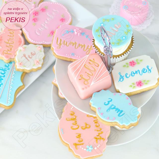 Na hrbtni strani vsakega modelčka sta črka in smerna puščica, ki vam omogočata raven odtis. Odtisnjene črke lahko obarvate in okrasite z uporabo royal Icinga, čoko tubo, stopljeno čokolado, s posipi, živilskimi barvami ali jedilnimi pisali.