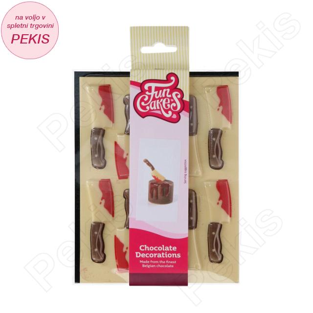 Halloween čokoladna dekoracija - krvave sekire je strašljivo sladka poslastica, ki bo navdušila vse ljubitelje noči čarovnic. Ta čokoladni komplet vključuje ročno izdelane mini sekire, ki so prelite z realistično rdečo čokolado, ki spominja na kapljice krvi. Sekire so natančno oblikovane z ostrimi robovi in detajli, ki posnemajo pravo orodje, kar jim daje grozljiv in hkrati okusen videz. Izdelane so iz vrhunske čokolade, ki se topi v ustih in ponuja bogat, čokoladni okus. Ta dekoracija je idealna za okrasitev tort, piškotov ali sladic na Halloween zabavah, saj bo dodala element groze in humorja. Vaši gostje bodo navdušeni nad tem okusnim in hkrati strašljivim dodatkom!