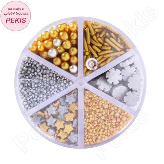 Sladkorni komplet "Praznična iskrica" je čudovit in raznolik set posipov, ki bo vaše praznične sladice spremenil v pravo praznično čarobnost.