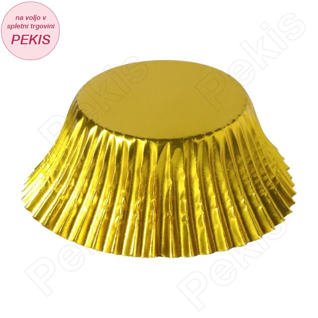 Papirnate skodelice so izdelane iz premium papirja, obloženega s kovinsko folijo, ki učinkovito zaustavi maščobne sledi in ohranja čisto obliko tudi po peki. Zahvaljujoč kovinski prevleki toplota v pečici enakomerno kroži, kar zagotavlja popolno pečene, sočne in rahle muffine z zlato obarvanimi robovi. Premer dna 5 cm je idealen za klasične muffine in cupcakes vseh vrst.