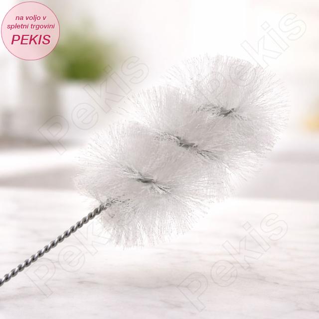 Globinsko čiščenje, ki doseže tja, kamor roka ne more. Krtača z dolgo, prožno spiralo nežno zdrsne v notranjost steklenice in odstrani ostanke brez napora. Mehke, a učinkovite ščetine delujejo kot tiha metlica, ki očisti vsak kotiček – od ozkih vratov do širših posod.