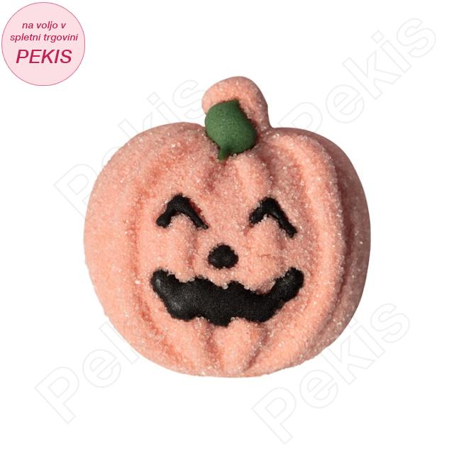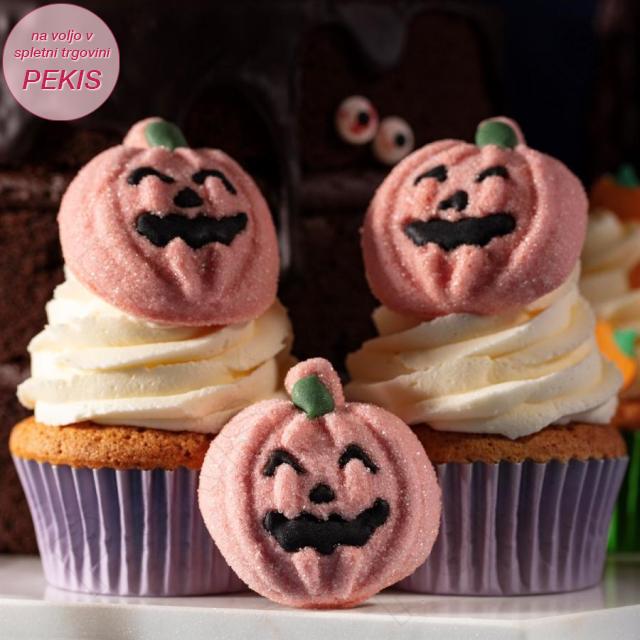 Vsak marshmallow je oblikovan v značilno bučo, široko približno 5 cm in je posamično zavit, kar zagotavlja svežino in priročno delitev. V enem paketu prejmete 12 kosov, ki jih lahko uporabite kot sladico, dekoracijo ali zabavne prigrizke ob “trick or treat” dogodivščinah.