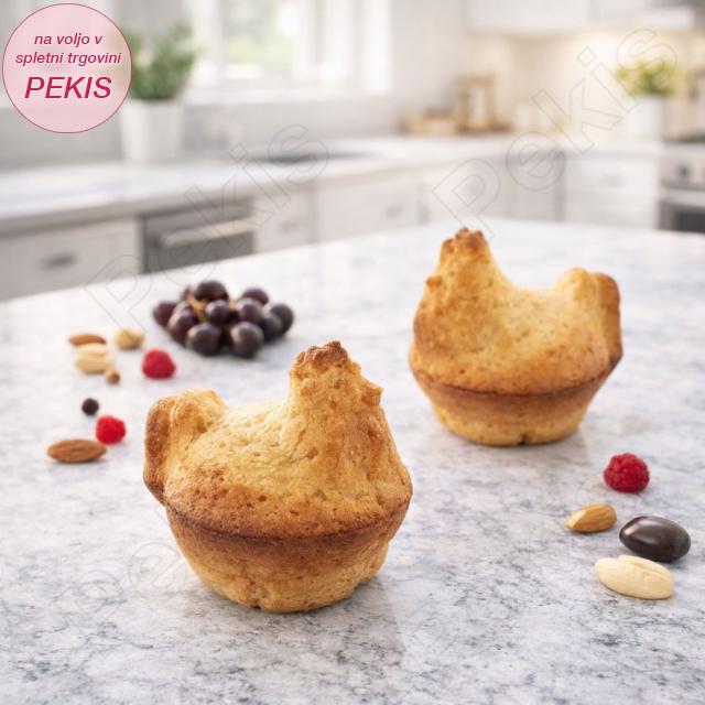 Pomlad na mizi se začne z obliko. Ta silikonski model za mafine v obliki kokošk vnese v velikonočno peko toplino doma, igrivost tradicije in tisti nasmeh, ki se pojavi še preden sladico postrežeš. Kolački se iz modela ločijo lahkotno, kot bi sami želeli na svet – gladki, mehki, z jasno obliko, ki deluje skoraj ročno izdelano. Primeren je za trenutke, ko želiš, da peka ni le okusna, ampak tudi čustvena izkušnja.