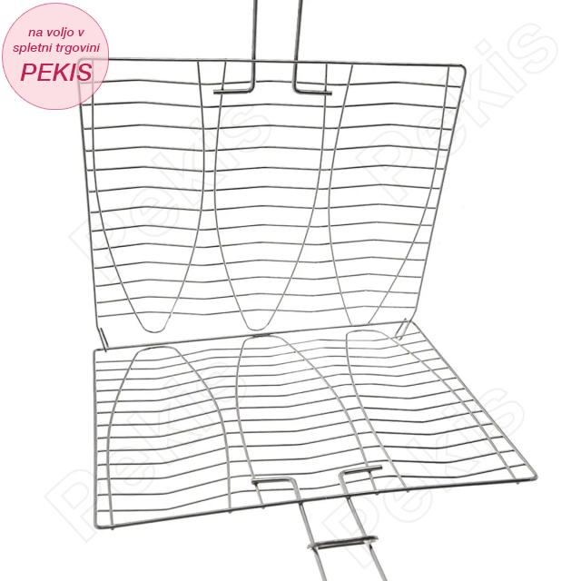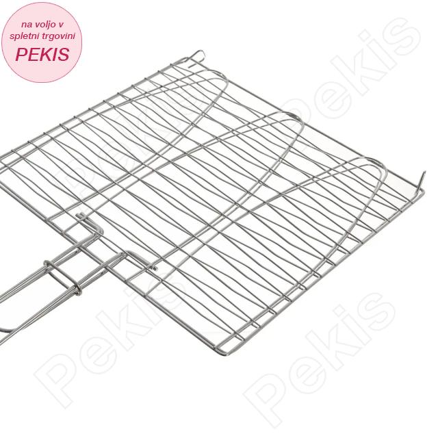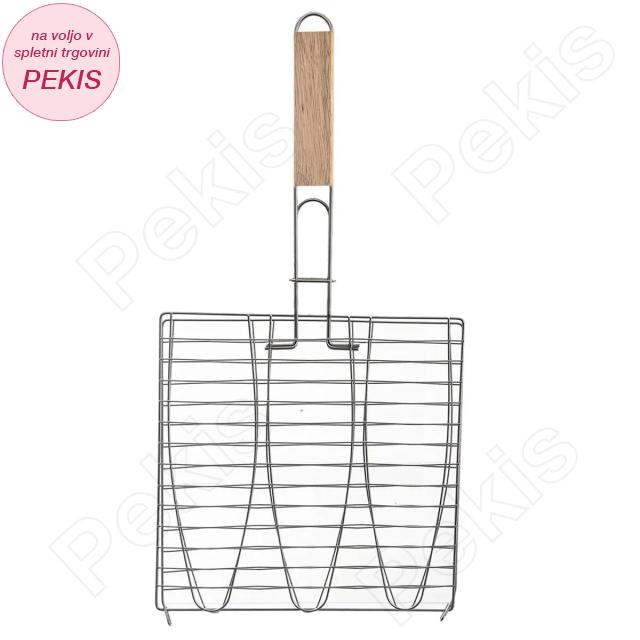 Kakovostna rešetka za žar z ergonomskim ročajem je idealna za enostavno, varno in enakomerno peko rib, zelenjave in mesa. Omogoča preprosto obračanje brez razpadanja hrane ter popolno zapečenost na obeh straneh. Primerna je za pripravo do 3 rib hkrati, kar jo naredi odlično izbiro za domačo ali vrtno peko na žaru. Podaljšan ročaj učinkovito ščiti roke pred vročino in omogoča udobno rokovanje tudi pri visokih temperaturah.