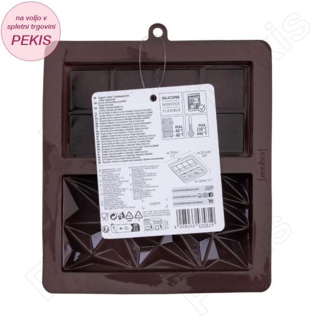 Izdelan iz prilagodljivega in vzdržljivega silikona, ki je primeren za stik z živili. Modelček zagotavlja enostavno odstranjevanje čokolade, brez lepljenja ali lomljenja končnih izdelkov.