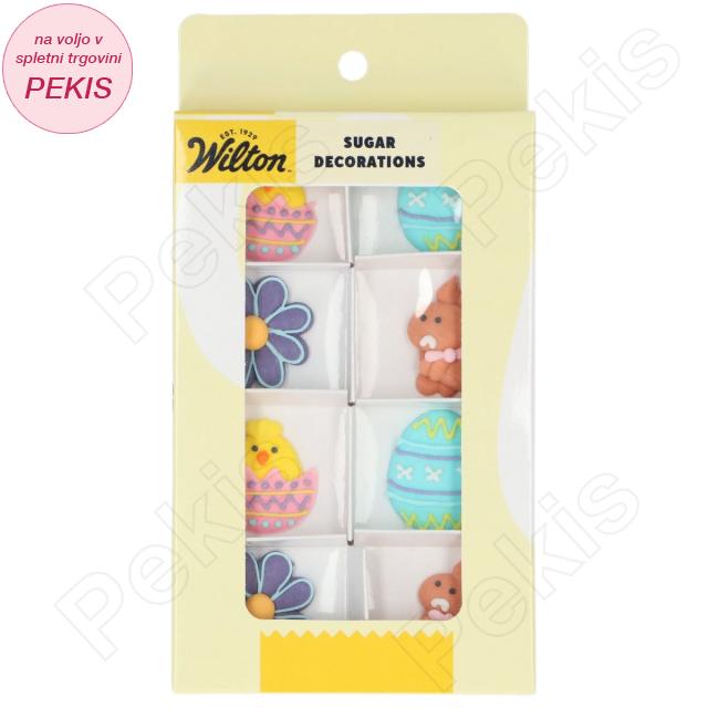 Komplet vsebuje 8 sladkornih okraskov z motivi piščančkov v jajcih, pisanih velikonočnih jajc, rožic in zajčkov, ki ustvarjajo igriv, a uravnotežen videz. Barvno se lepo podajo k svetlim kremam, glazuram in preprostim biskvitom.
