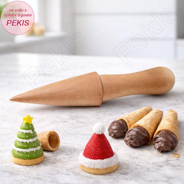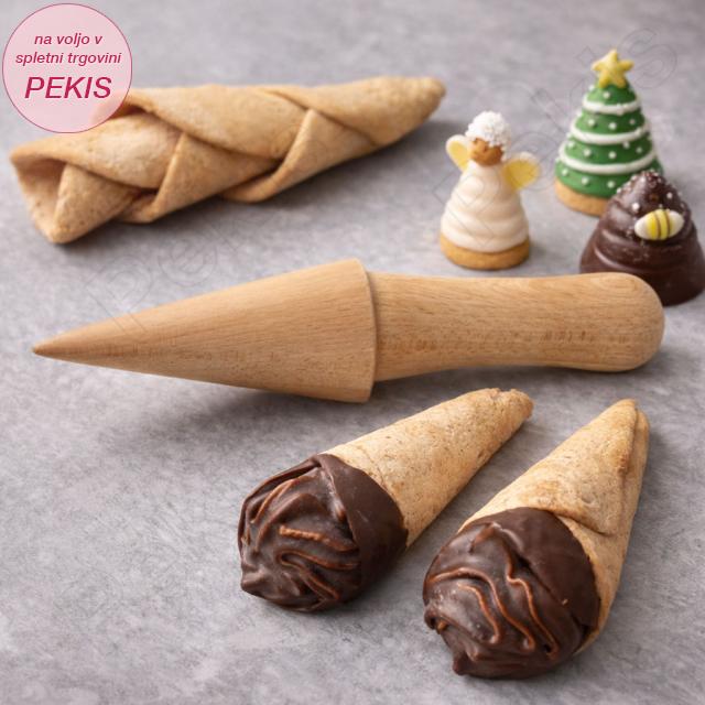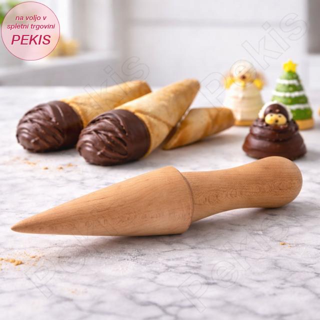 Stožčasti kalup iz bukovega lesa za popolne domače kornete
