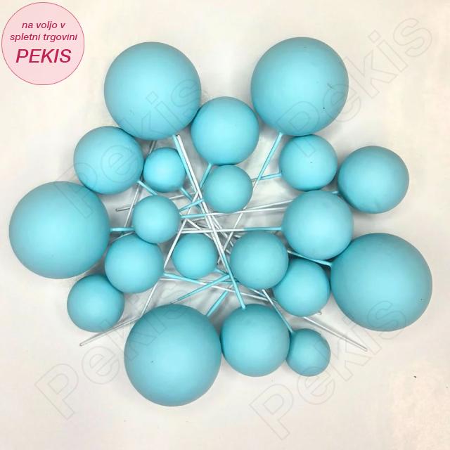 Elegantne topper kroglice za okrasitev torte v prefinjeni modri barvi ustvarijo sodoben, svež in prestižen videz vsake sladice – od rojstnodnevnih tort do slavnostnih kreacij. Z različnimi premeri približno 2 cm, 2,5 cm, 3 cm in 4 cm omogočajo enostavno ustvarjanje privlačnih in dinamičnih dekoracij. Komplet vsebuje 20 kosov, izdelanih iz kakovostne plastike z žico za cvetje, ki jih je mogoče večkrat uporabiti.
