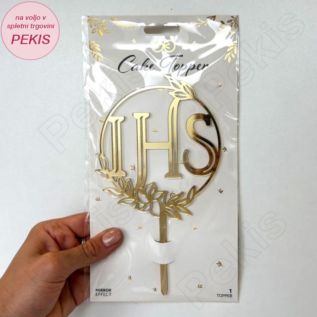 Topper za Sveto obhajilo – IHS (mirror gold)