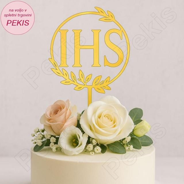 Za slovesno in elegantno praznovanje prvega svetega obhajila izberite simbolično in prestižno dekoracijo, ki bo vaši torti dodala duhovno globino in vizualno eleganco. Ta topper z monogramom IHS – eno najstarejših krščanskih oznak za Jezusa Kristusa – v prestižni zrcalno zlati (mirror gold) izvedbi predstavlja popolno dopolnitev za to svetlo obredje.