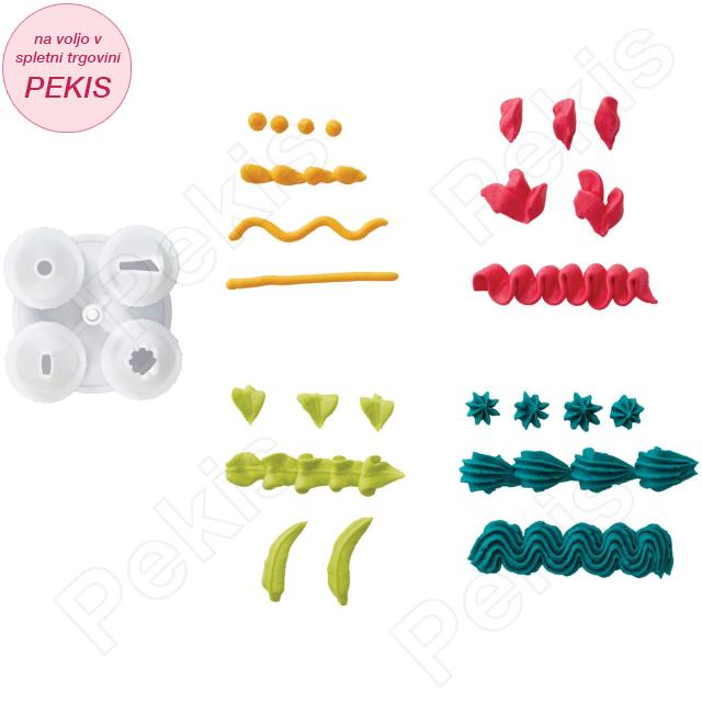 Vključuje okrogle, zvezdne, listne in cvetne nastavke za dekoriranje