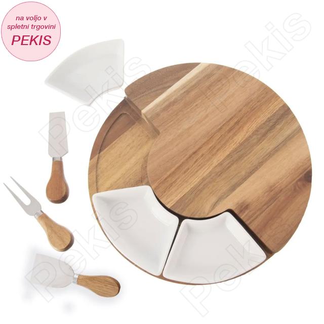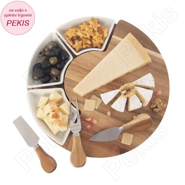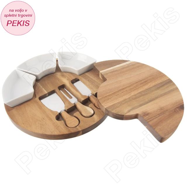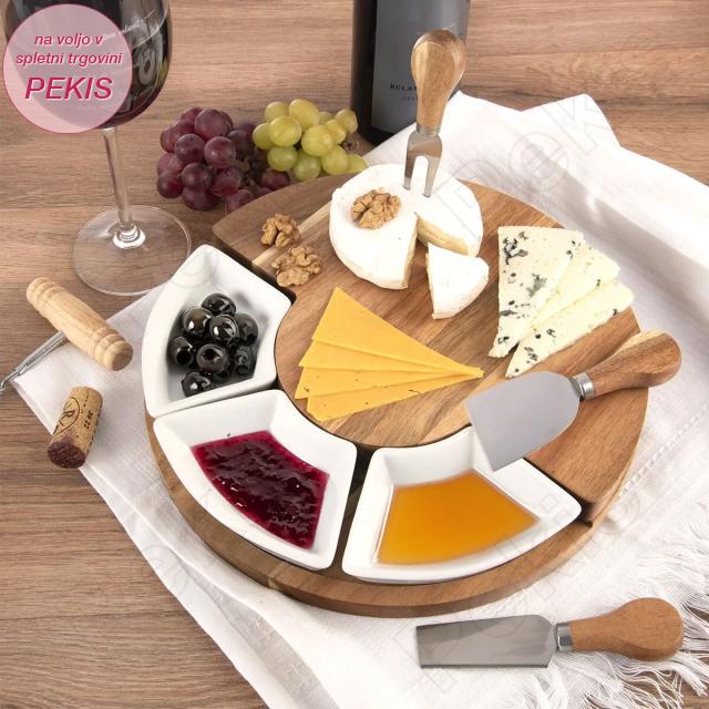 Zložljivi komplet akacijevih desk za sir – prefinjen trenutek ob kozarcu vina