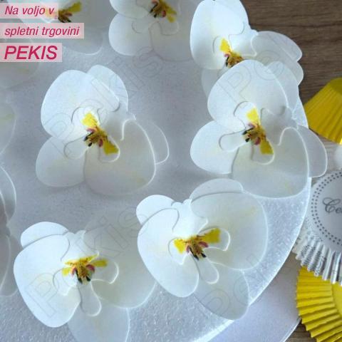 Wafer bela orhideja – prefinjen in eleganten cvetlični dodatek za nepozabne sladice! Obogatite svoje slaščice z očarljivimi užitnimi oblatnimi cvetovi bele orhideje, ki bodo vsako sladko kreacijo naredili izjemno posebno. Paket vsebuje 10 velikih belih cvetov orhideje s premerom 8 cm, pripravljenih za takojšnjo uporabo.